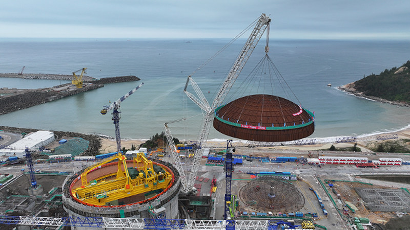 4月29日8時8分,中廣核廣東陸豐核電項目5號機組穹頂完成吊裝,巨力索具鋼絲繩索具產品全程保障該項目吊裝順利進行,此次吊裝成功標志著該臺“華龍一號”核電機組從土建施工階段全面轉入設備安裝階段。
