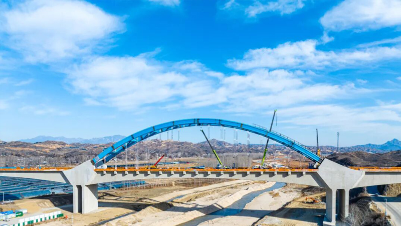 雄忻高鐵跨胭脂河大橋連續(xù)剛構(gòu)拱橋順利建成,全橋用鋼量近800噸,吊桿68根,均由巨力索具制造施工。