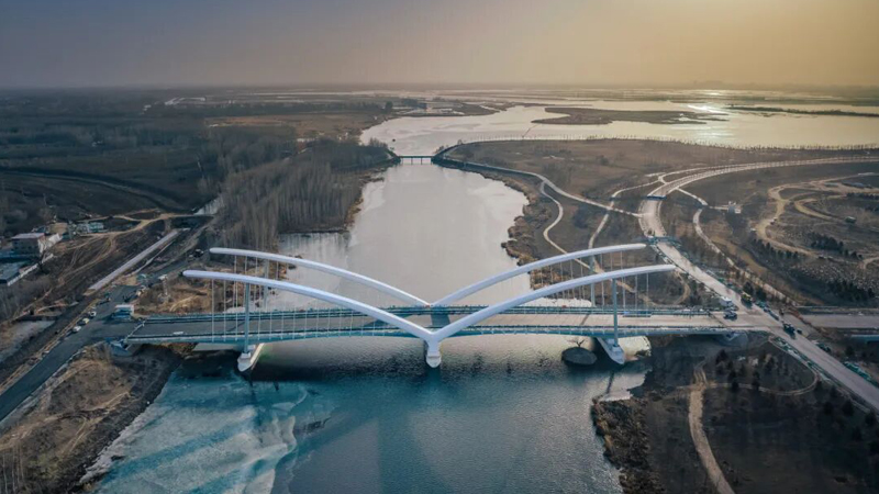 雄安新區(qū)地標(biāo)性建筑白溝引河留通橋工程主體結(jié)構(gòu)順利完工,大橋上部結(jié)構(gòu)鋼構(gòu)件用量1500多噸,均由巨力索具股份有限公司制造施工。