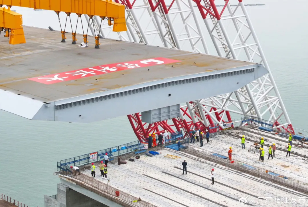 陽江港大橋順利合龍 如一條巨龍橫臥海面