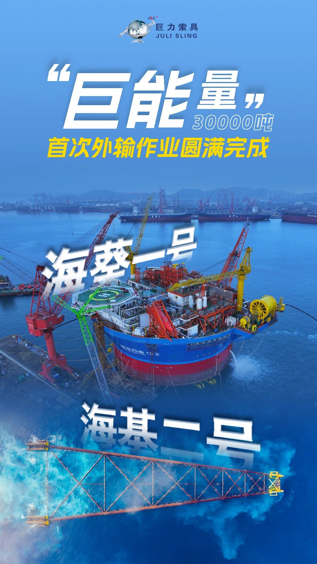 巨力索具通過自主研發高性能吊裝產品,成功服務于眾多重點能源項目。未來,巨力索具將秉承創新發展的理念,不斷推動新能源吊裝技術的創新與突破,用科技成果服務國家戰略需求,為我國深海油氣快速發展健康發展保駕護航。