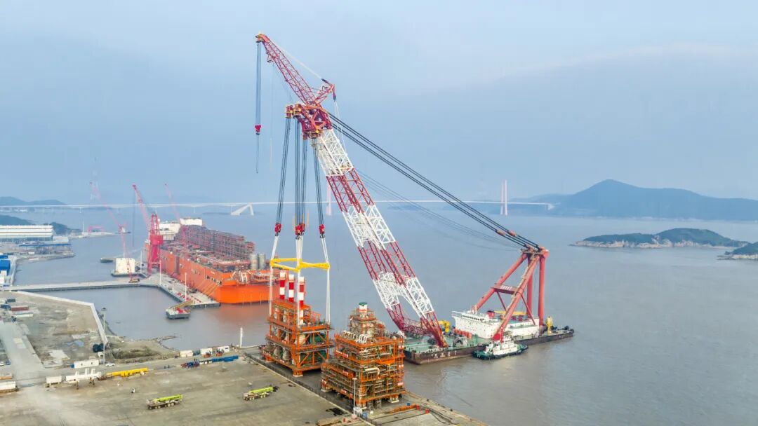 在裝置建造過程中,巨力索具承擔了該“海上移動化工廠”上部模塊的吊裝集成任務,為項目量身定制了5000T吊梁系統。這套裝備需承受FLNG模塊吊裝過程中的動態載荷,技術要求遠超常規海工項目,是項目建設中技術難度最高、風險最大的環節之一。