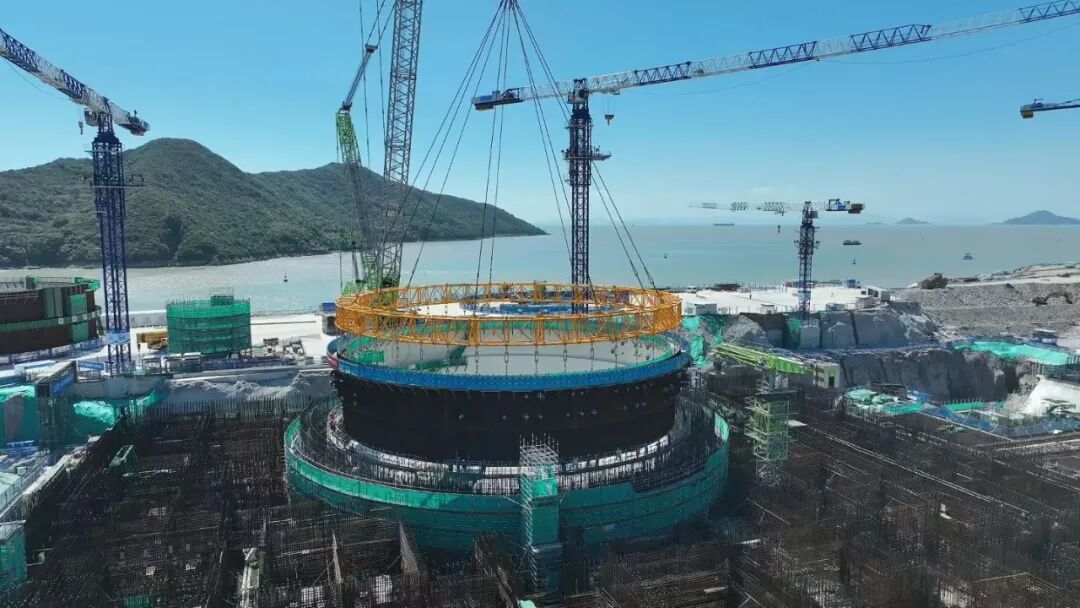 歷經(jīng)4個小時的奮戰(zhàn),金七門核電1號機(jī)組鋼結(jié)構(gòu)安全殼鋼襯里模塊一平穩(wěn)吊裝就位,為核島反應(yīng)堆廠房內(nèi)部結(jié)構(gòu)和內(nèi)外殼并行施工奠定了堅實(shí)基礎(chǔ)。