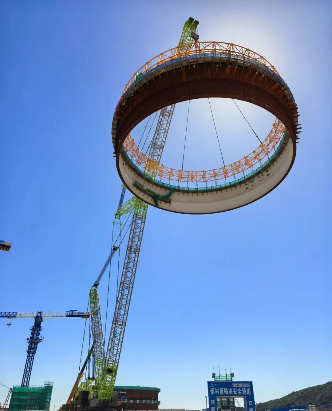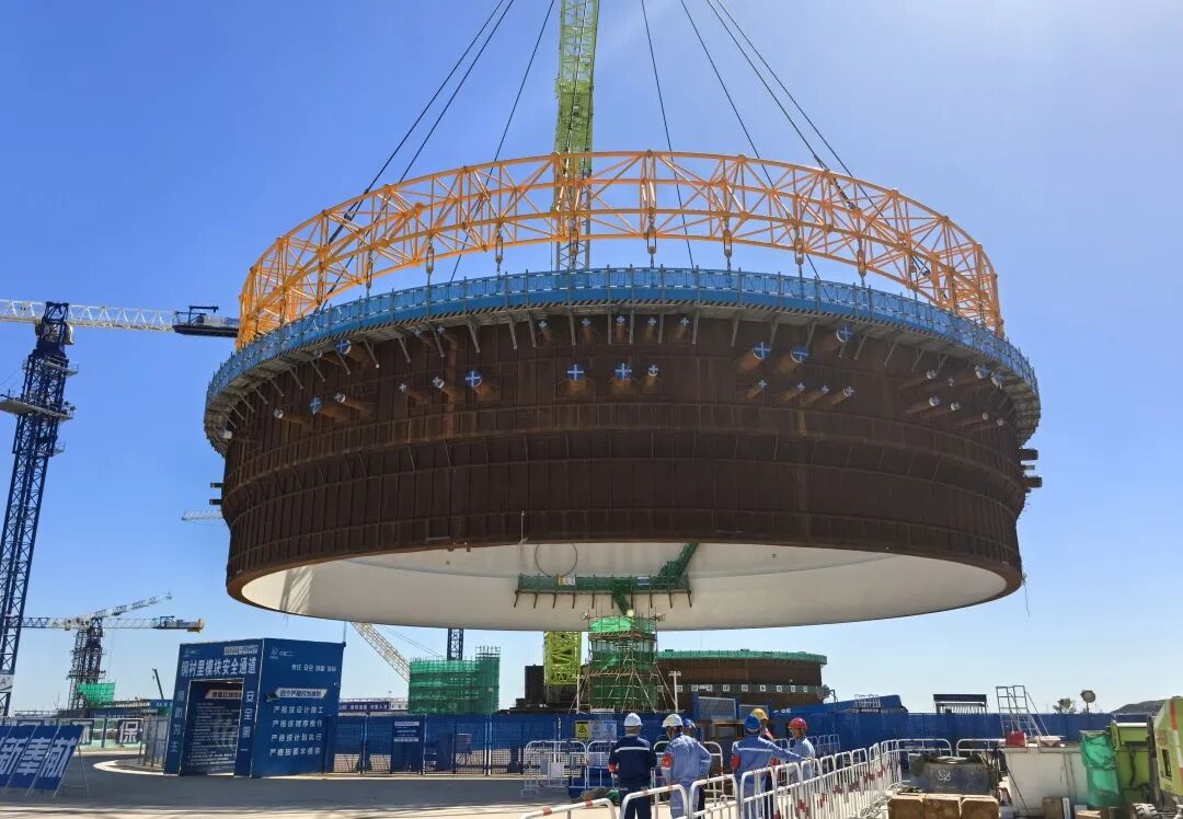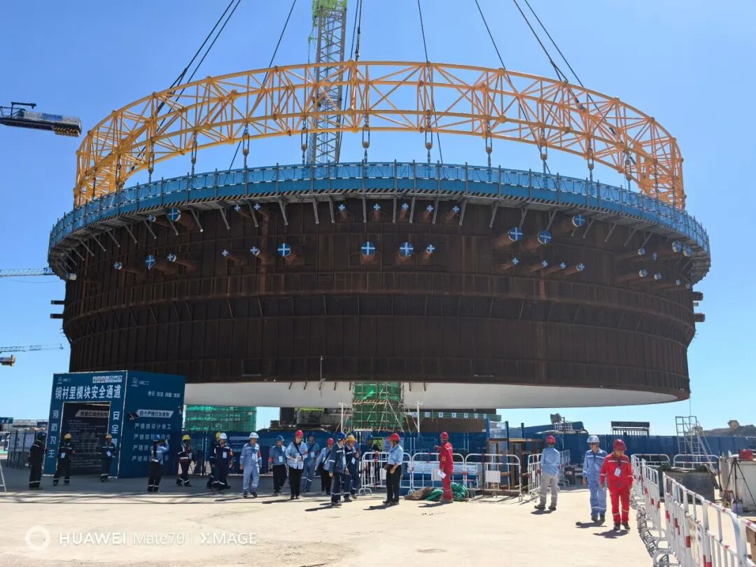 9月28日,金七門核電1號機(jī)組鋼結(jié)構(gòu)安全殼鋼襯里模塊一平穩(wěn)落位,首個大型模塊吊裝任務(wù)圓滿完成。此次吊裝采用了以巨力索具環(huán)形吊具為代表的先進(jìn)吊裝技術(shù),實(shí)現(xiàn)了安全精準(zhǔn)的吊裝作業(yè)。