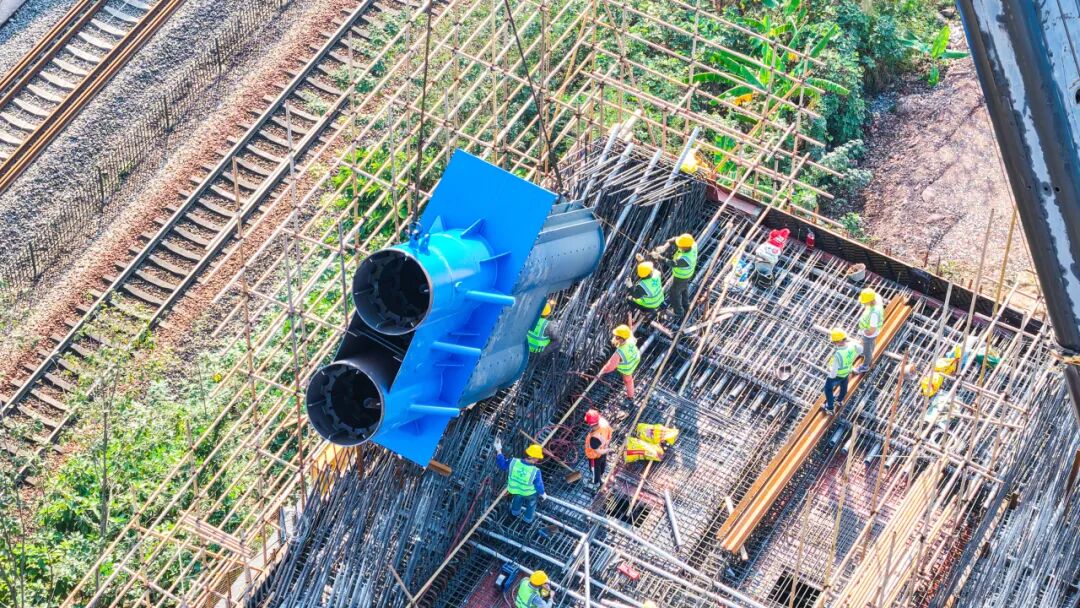 平陸運(yùn)河是西部陸海新通道的骨干工程,其建設(shè)對于優(yōu)化區(qū)域交通物流格局、促進(jìn)沿線經(jīng)濟(jì)社會發(fā)展具有深遠(yuǎn)戰(zhàn)略意義。欽北線鐵路橋改建工程是保障平陸運(yùn)河航道通航凈空要求的要害工程之一。改建后,橋梁主跨由原64米增至112米,通航凈空顯著提升,將可滿足未來5000噸級船舶的通航需求,從而徹底打通運(yùn)河關(guān)鍵節(jié)點(diǎn)的水運(yùn)瓶頸。平陸運(yùn)河欽北線鐵路橋改建工程象征著平陸運(yùn)河從圖紙走向現(xiàn)實(shí)邁出了堅(jiān)實(shí)一步,為我國西南地區(qū)打開了一條通往世界的嶄新水上門戶。