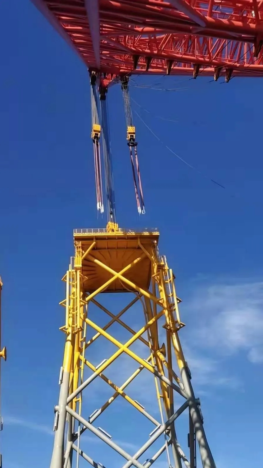 近日,惠洲海域亞洲第一吊高“秦航工2300”自航起重船初試鋒芒,成功吊裝惠州海域風(fēng)場(chǎng)今年首根鋼結(jié)構(gòu)導(dǎo)管架。