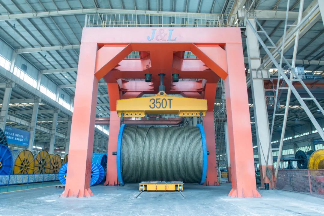 巨力索具為“秦航工2300”號(hào)提供起升、變幅、拋錨三大系統(tǒng)在內(nèi)的全船鋼絲繩配套,包括本次超千噸級(jí)吊裝所用全套索具系列產(chǎn)品。其中為滿足“秦航工2300”號(hào)亞洲第一吊高的施工需求,船舶工程師設(shè)計(jì)了超高的2300噸吊機(jī)主臂架,使主變幅鋼絲繩長(zhǎng)度必須滿足主臂架設(shè)計(jì)要求,巨力索具項(xiàng)目團(tuán)隊(duì)根據(jù)設(shè)計(jì)方案結(jié)合生產(chǎn)工藝進(jìn)行改造提升,最終實(shí)現(xiàn)單根鋼絲繩長(zhǎng)度超過(guò)10730米,凈重達(dá)215噸成功交付使用,該鋼絲繩成功投入使用標(biāo)志著我國(guó)鋼絲繩產(chǎn)業(yè)又向前邁出一步,既彰顯了巨力索具制造實(shí)力,也為我國(guó)在超長(zhǎng)超重鋼絲繩領(lǐng)域發(fā)展畫上濃墨重彩的一筆。