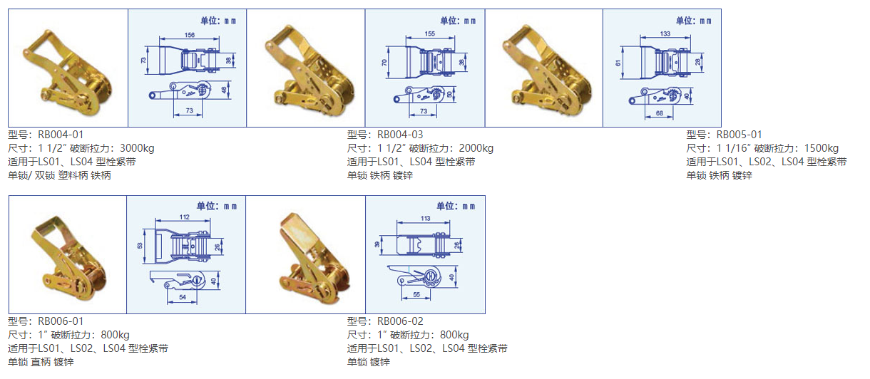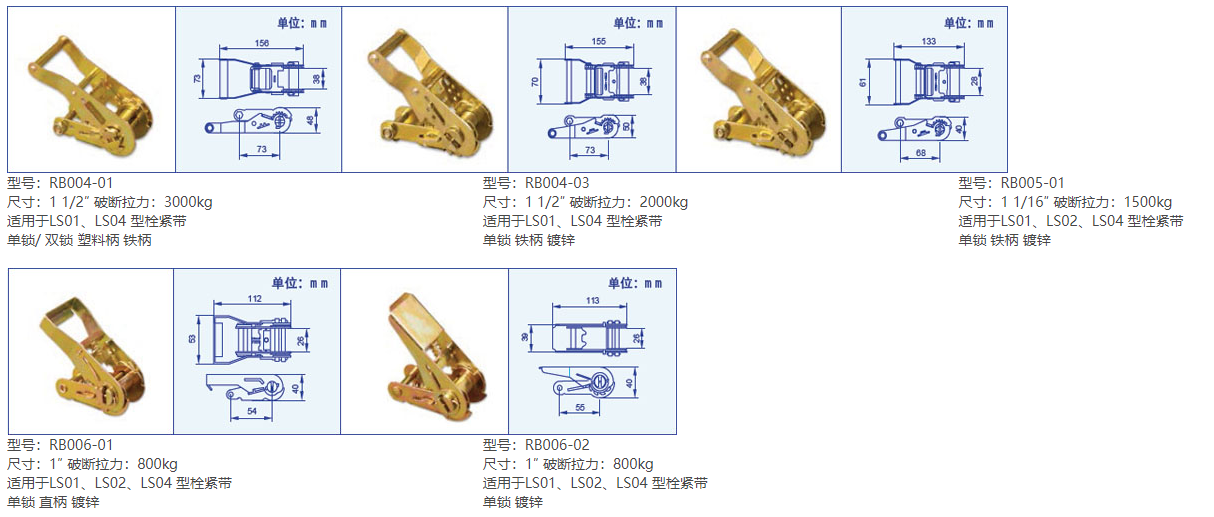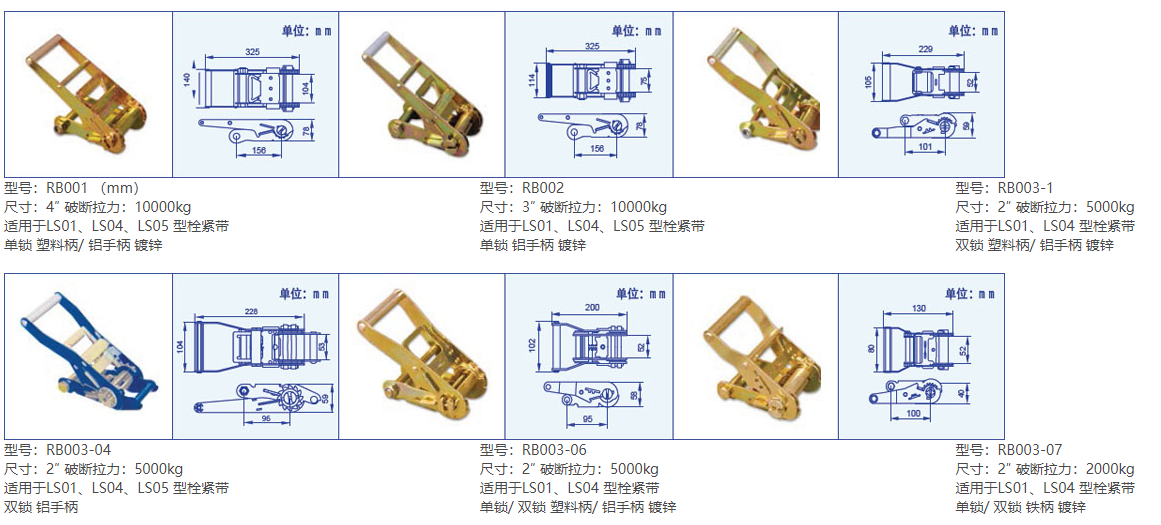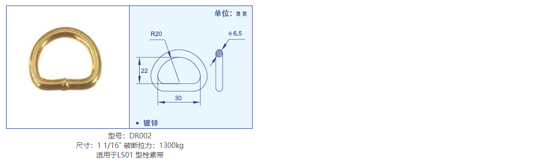 | 產(chǎn)品型號(hào) | 適用尺寸 | 破斷拉力(kg) | 規(guī)格大小(mm) | 表 面 | 適合型號(hào) | ||||